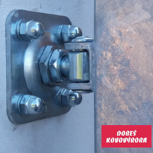 Součástí dodávky jsou: 2 kusy sloupků jekl 100/100/3 (pantový a dorazový) – černý profil. Stavitelné panty CAIS 2 kusy (viz foto), zámek pro vložku FAB a otočný dorazový díl se šroubem, díky čemuž lze branku otvírat k sobě i od sebe.