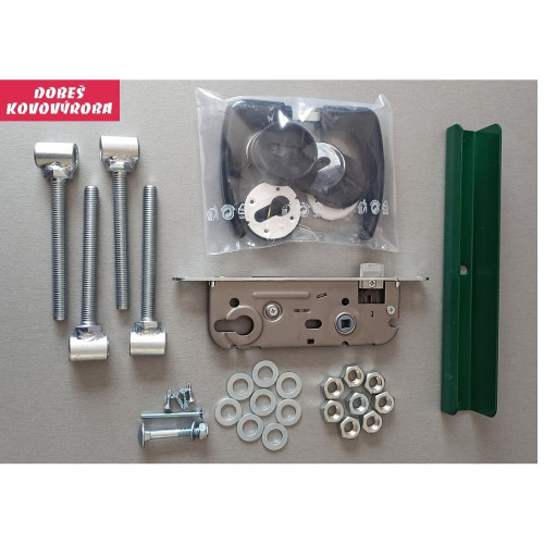 Součástí brány jsou 2 kusy pantových sloupků, 4 kusy stavitelných pantů, zámek, klika a dorazový díl se šroubem. Dorazový díl je otočný, bránu lze tedy otevírat jak dovnitř, tak ven. Klika je na pravém křídle při pohledu z exteriéru. Na druhém křídle je zajišťovací uzamykatelný kolík (šubr) na zajištění křídla.
