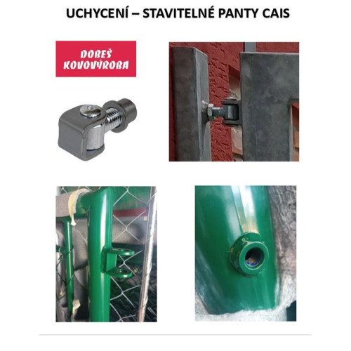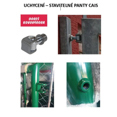 Součástí dodávky jsou: 2 kusy sloupků jekl 80/80/3 – pozinkovaný profil DX51D. Stavitelné panty CAIS – 4 kusy (viz foto), zámek pro vložku FAB a otočný dorazový díl se šroubem, díky němuž lze bránu otvírat k sobě i od sebe.