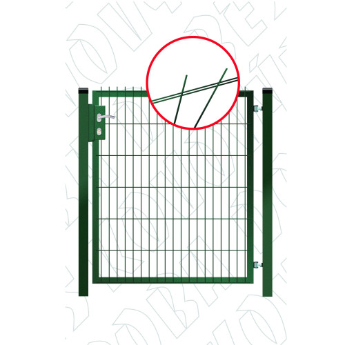 Výplň: svařovaný poplastovaný panel 2D. Panel je do rámu branky vevařen. Výšky panelu jsou dány z výroby. V některých případech se panel musí vzhledem k výšce rámu ve spodní části zkrátit. V objednávací tabulce vyberte variantu, zda budete chtít v horní části panel bez přesahu, nebo s přesahem. Detaily jsou ve fotogalerii.