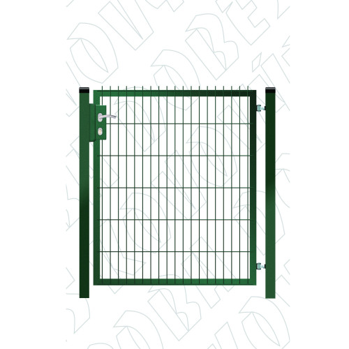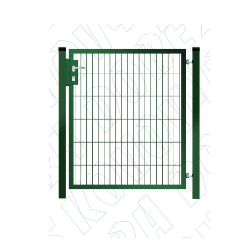 Vstupní jeklová branka šíře 1250 mm s FAB zamykáním s výplní vevařeným poplastovaným panelem 2D v zelené barvě. Možnost výběru jiné barvy dle stupnice RAL za příplatek 10 – 15 % k základní ceně. Foto ilustrační.