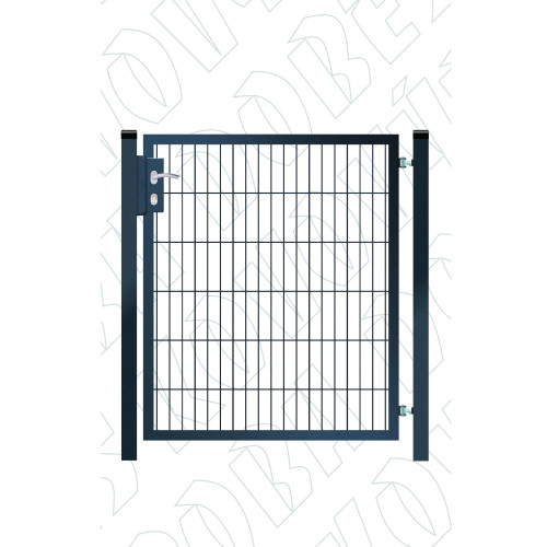 Vstupní jeklová branka šíře 1250 mm s FAB zamykáním s výplní vevařeným poplastovaným panelem 2D v antracitové barvě. Možnost výběru jiné barvy dle stupnice RAL za příplatek 10 – 15 % k základní ceně. Foto ilustrační.