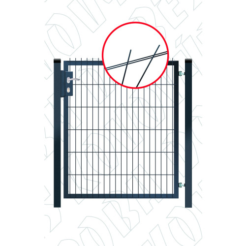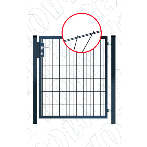 Výplň: svařovaný poplastovaný panel 2D. Panel je do rámu branky vevařen. Výšky panelu jsou dány z výroby. V některých případech se panel musí vzhledem k výšce rámu ve spodní části zkrátit. V objednávací tabulce vyberte variantu, zda budete chtít v horní části panel bez přesahu, nebo s přesahem. Detaily jsou ve fotogalerii.
