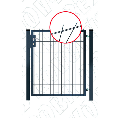 Výplň: svařovaný poplastovaný panel 2D. Panel je do rámu branky vevařen. Výšky panelu jsou dány z výroby. V některých případech se panel musí vzhledem k výšce rámu ve spodní části zkrátit. V objednávací tabulce vyberte variantu, zda budete chtít v horní části panel bez přesahu, nebo s přesahem. Detaily jsou ve fotogalerii.