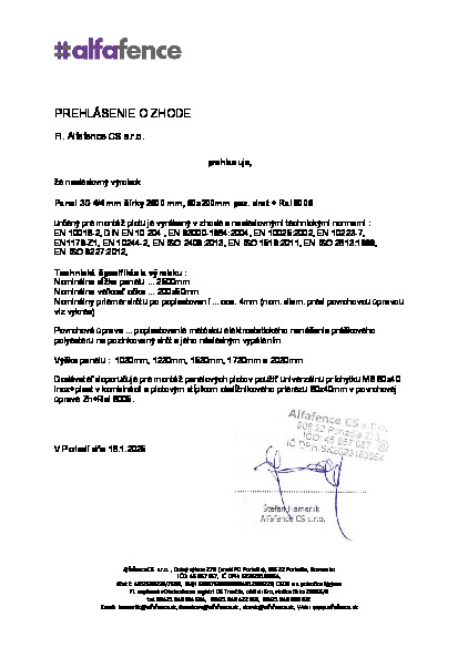 3D plotový panel je vyroben z ocelových drátů o průměru 4-4 mm (vodorovně-svisle), oko 50/200 mm. Šířka panelu je 2500 mm.