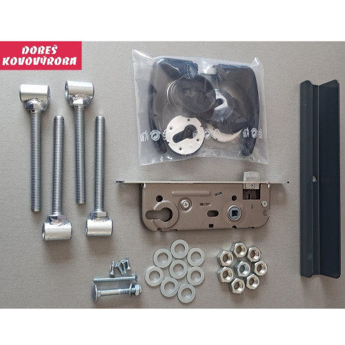 Součástí brány jsou 2 kusy pantových sloupků, 4 kusy stavitelných pantů, zámek, klika a dorazový díl se šroubem. Dorazový díl je otočný, bránu lze tedy otevírat jak dovnitř, tak ven. Klika je na pravém křídle při pohledu z exteriéru. Na druhém křídle je zajišťovací uzamykatelný kolík (šubr) na zajištění křídla.