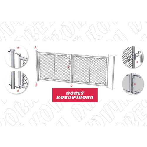 Konstrukce brány je vyrobena z pozinkovaných trubek. Zavírání na kliku se zámkem pro vložku FAB. Výplet poplastovaným pletivem.