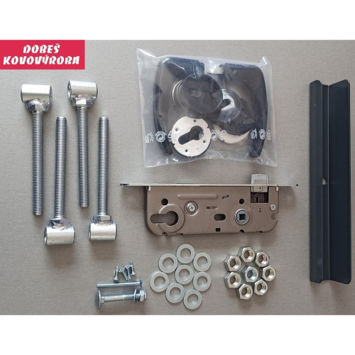 Součástí brány jsou 2 kusy pantových sloupků, 4 kusy stavitelných pantů, zámek, klika a dorazový díl se šroubem. Dorazový díl je otočný, bránu lze tedy otevírat jak dovnitř, tak ven.
