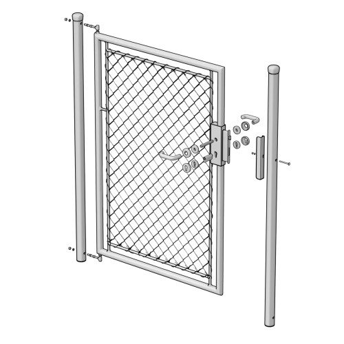 Součástí branky je 1 pantový a 1 dorazový sloupek ø 60mm, 2 kusy stavitelných pantů, zámek, klika a dorazový díl se šroubem. Dorazový díl je otočný, branku lze tedy použít jako pravou i levou.